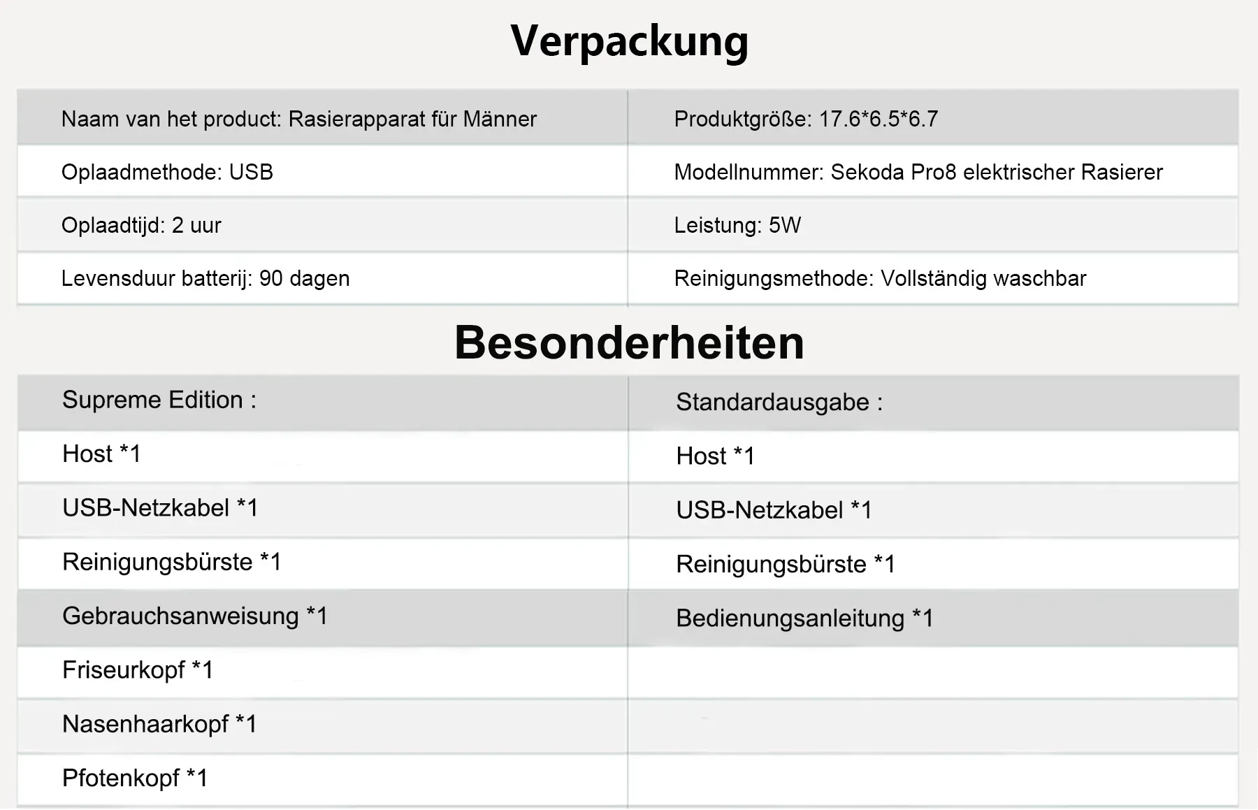 Mehrzweck-Rasierer, ausgestattet mit einem Friseurkopf, einem Nasenhaar-Kopf und einem Koteletten-Kopf, der das Trimmen von Haaren, das Ausbessern von Nasenhaaren und das Styling von Koteletten erleichtert, um alle Bedürfnisse der Männerpflege zu erfüllen.